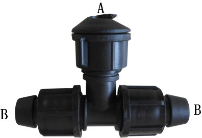 产品介绍:水带锁母旁三通是一种常用的滴灌配件,它一端与PE水带连接,一端与滴灌带连接 ,使用时需购买相配合的打孔器。