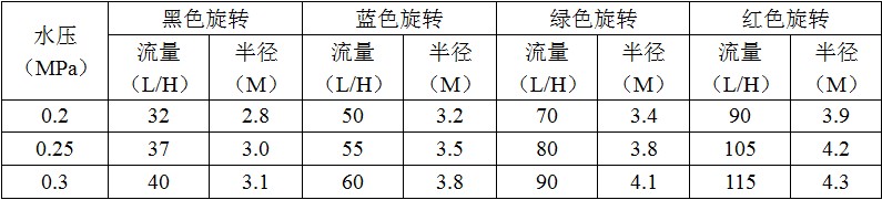注:D2008旋转喷头型号根据喷嘴的颜色进行区分。